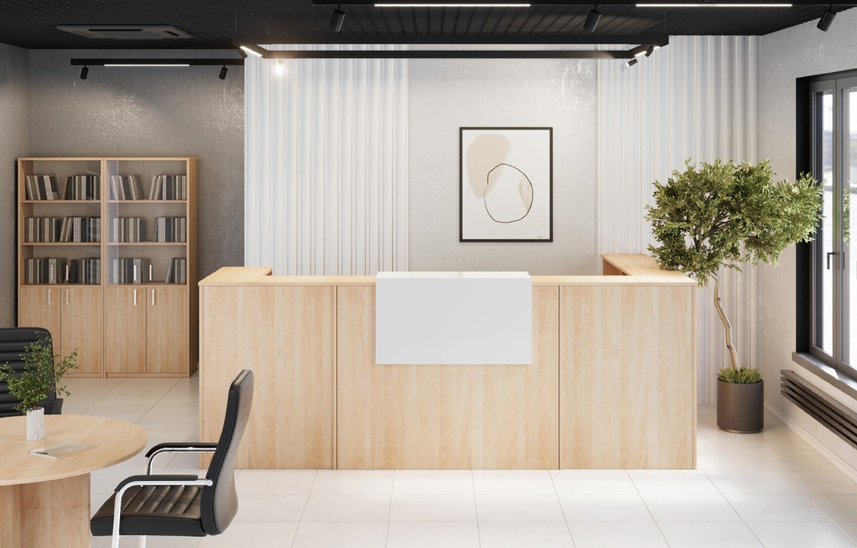 Стойка ресепшн угловая правая Арго А-556 Бук 900х900х1220 (Техно)
