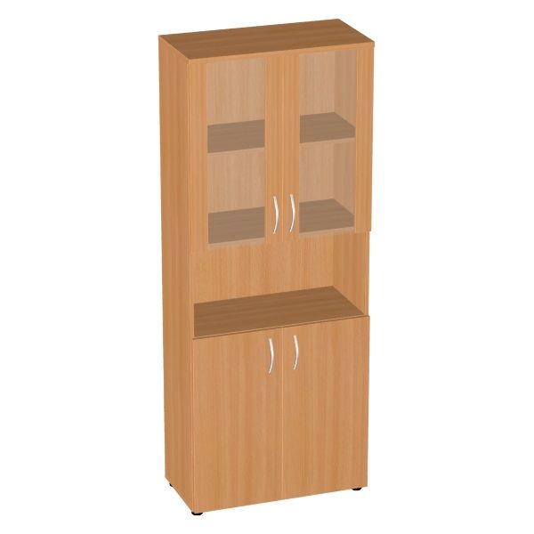 Шкаф широкий высокий с двумя комплектами дверей с низким стеклом в ДСП Эдем Э-44.7 768х385х1945
