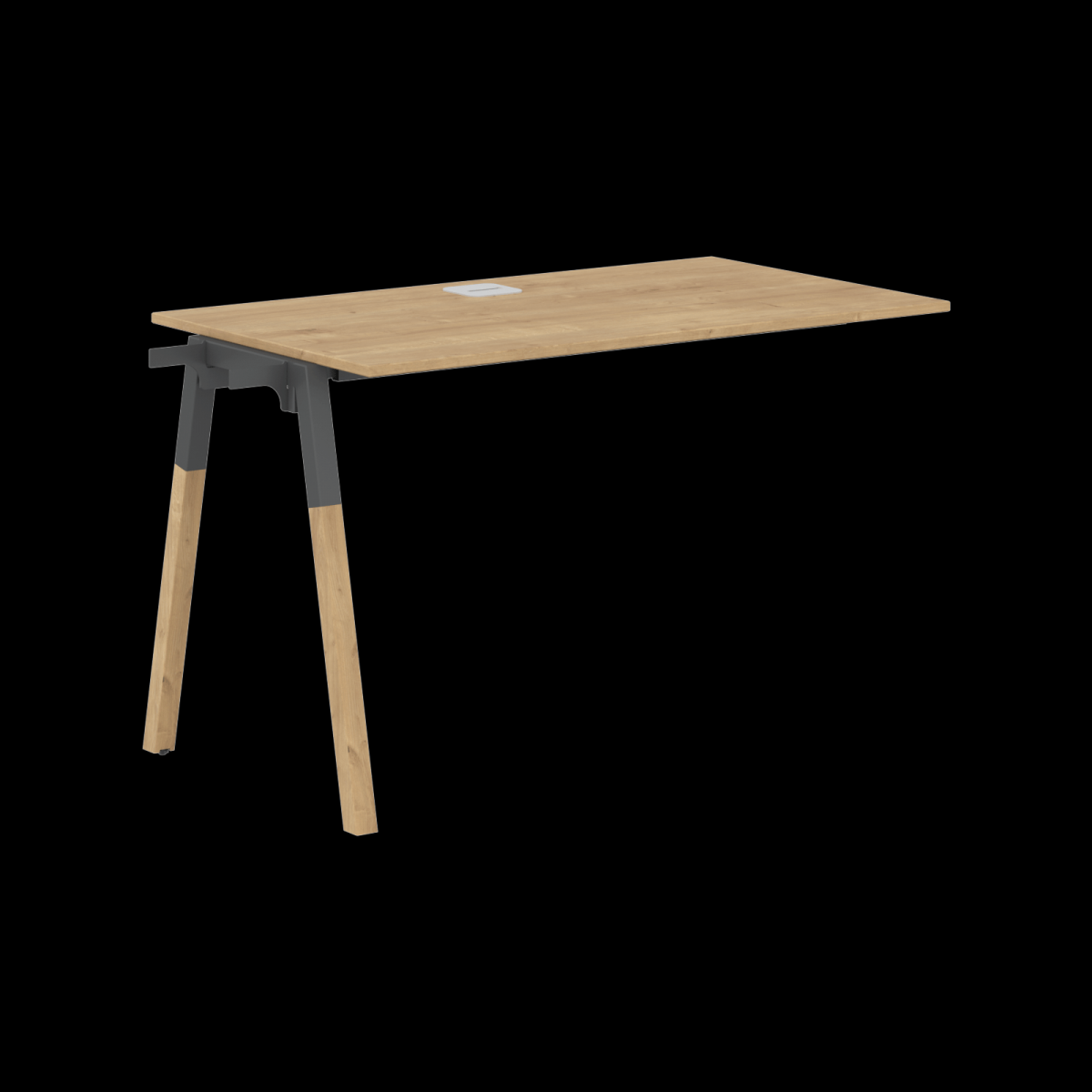 Столешница ЛДСП т.18мм. c кромкой ABS т.2.мм, комплектуется квадратной заглушкой кабель-канала по центру, 2-мя траверсами и промежуточной комбинированной опорой А-образной формы, верхняя часть из профиля трубы 40х40мм и нижняя часть из материала – бук; отделка – масло-воск Промежуточная опора с регулировкой внизу.