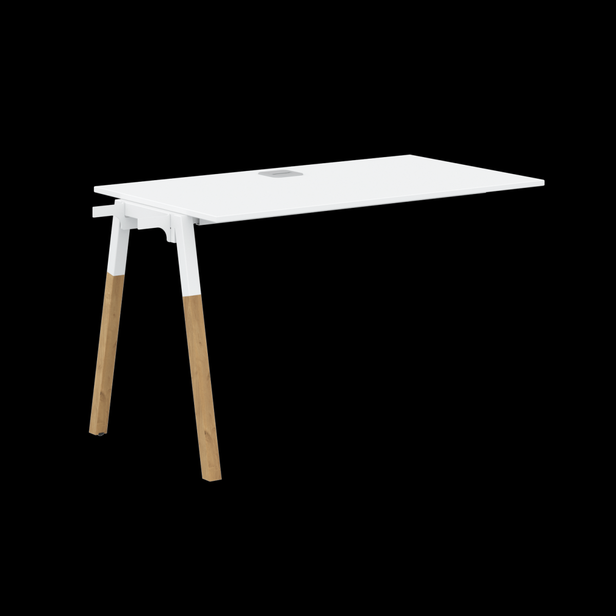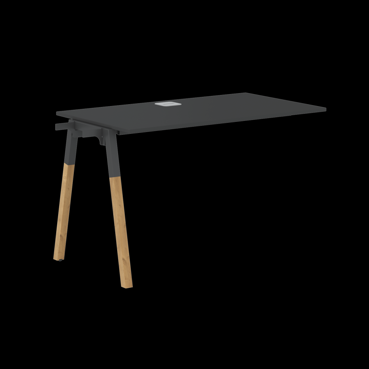 Столешница ЛДСП т.18мм. c кромкой ABS т.2.мм, комплектуется квадратной заглушкой кабель-канала по центру, 2-мя траверсами и промежуточной комбинированной опорой А-образной формы, верхняя часть из профиля трубы 40х40мм и нижняя часть из материала – бук; отделка – масло-воск Промежуточная опора с регулировкой внизу.
