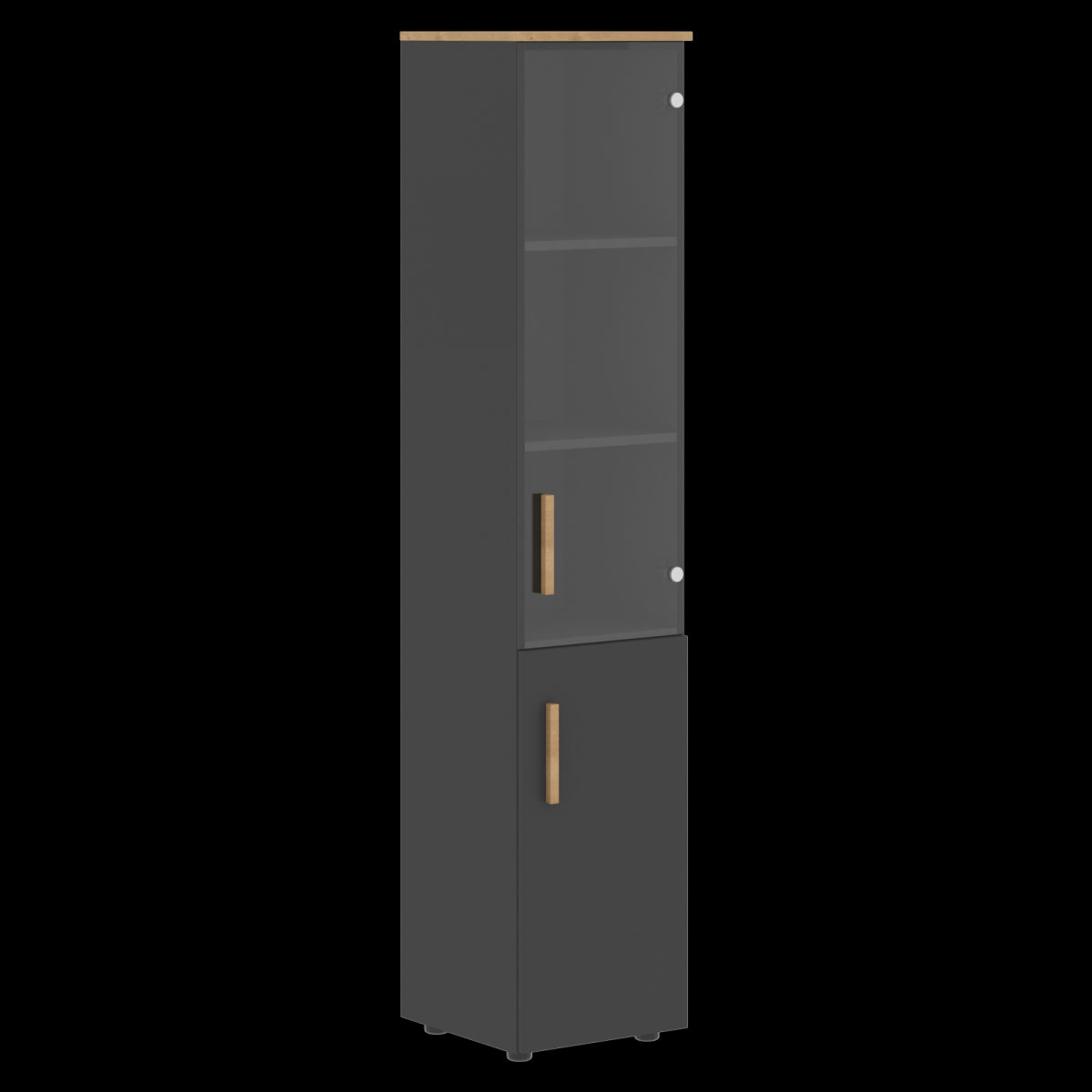 Шкаф колонка комбинированная со стеклом Forta FHC 40.2 (L/R) цвет Черный Графит/Дуб Гамильтон размер 404х429х1983мм (Skyland)