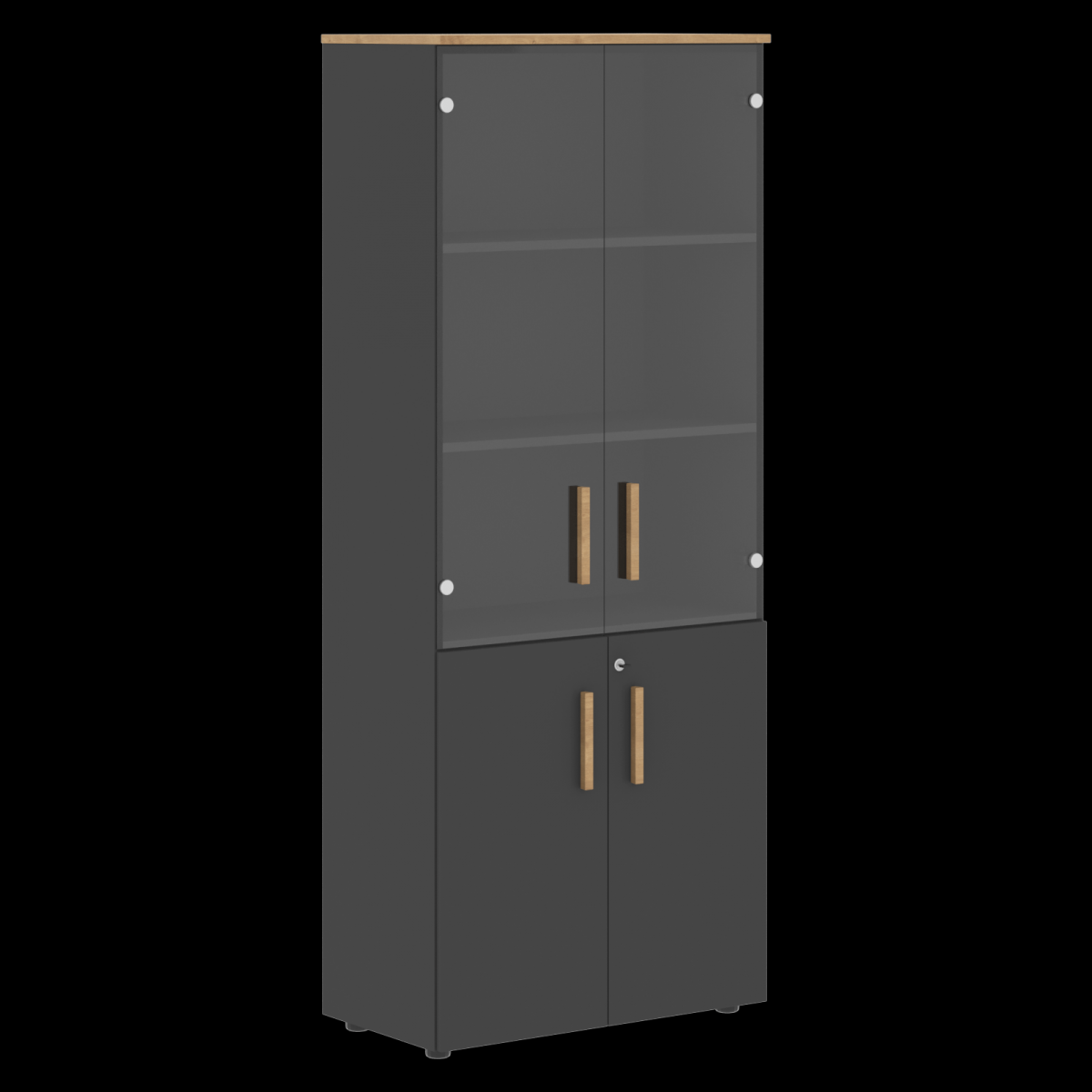 Шкаф и низкие двери выполнены из ЛДСП. Стеклянные двери - закаленное стекло, шлифованное (толщиной 4мм). В комплектации: 4 полки, замок. Опоры шкафа регулируются.
