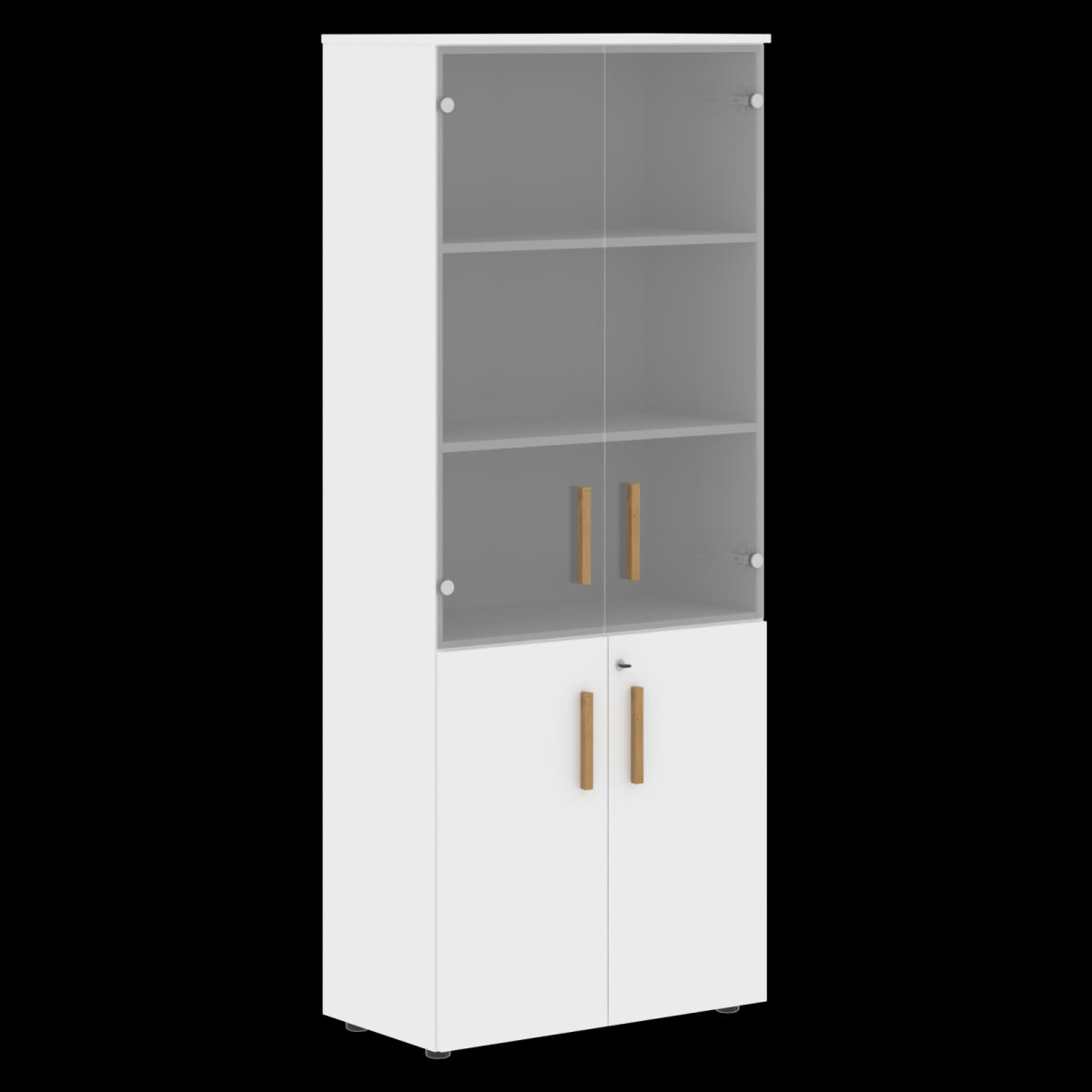 Шкаф комбинированный со стеклом Forta FHС 80.2(Я) цвет Белый премиум/Дуб Гамильтон размер 802х429х1983мм (Skyland)