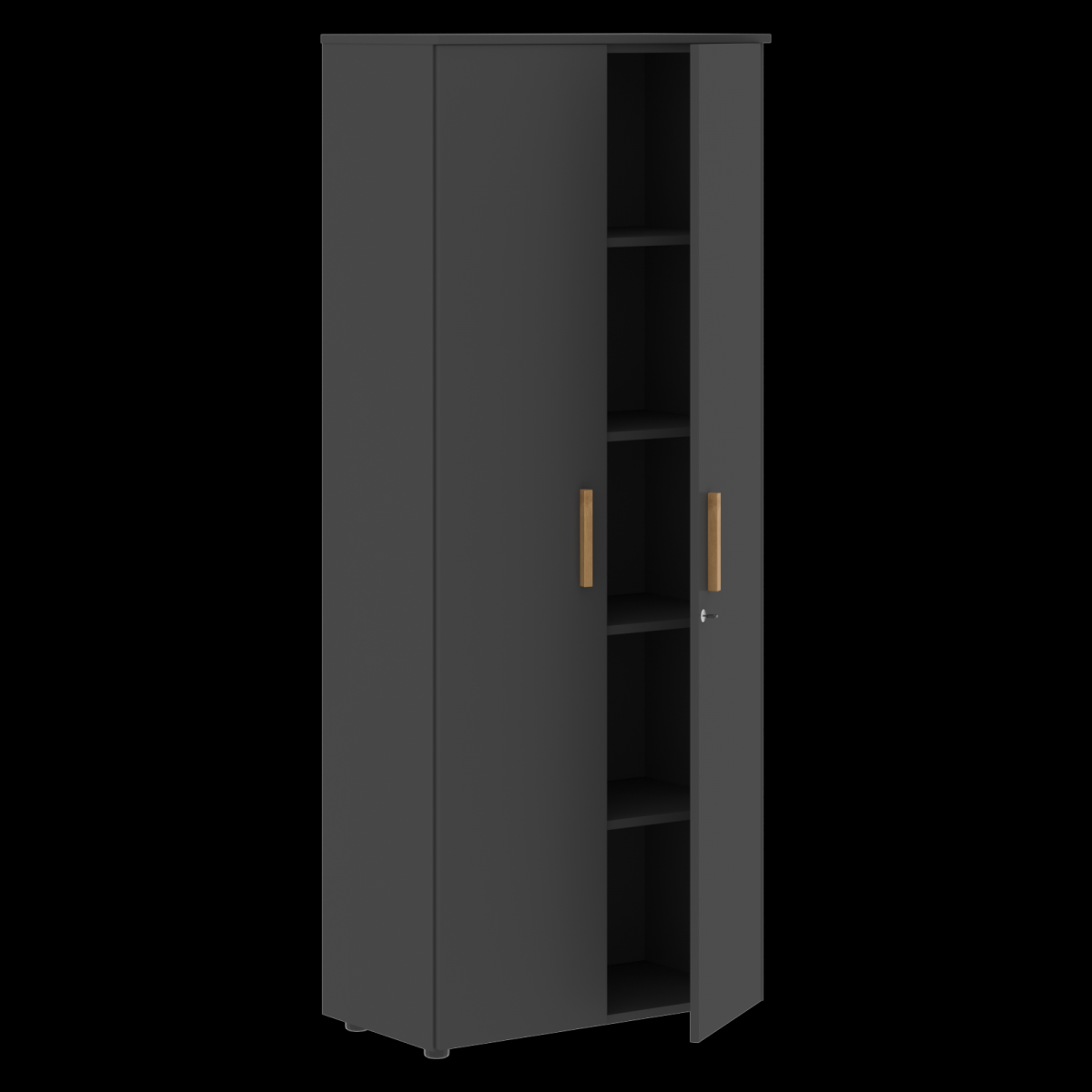 Шкаф и двери выполнены из ЛДСП. В комплектации: 4 полки, замок. Опоры шкафа регулируются.