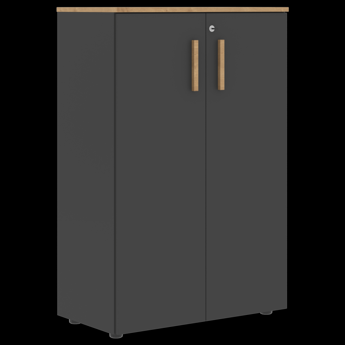 Шкаф и двери выполнены из ЛДСП. Есть замок. Опоры шкафа регулируются. Ручки вертикальные накладные из натурального дерева массив бука, в цвете дуб гамильтон. Натуральное дерево обработано маслом-воском, что подчеркивает текстуру древесины и создаёт очень прочную, твердую, износоустойчивую, антистатическую, водо- и грязеотталкивающую поверхность.