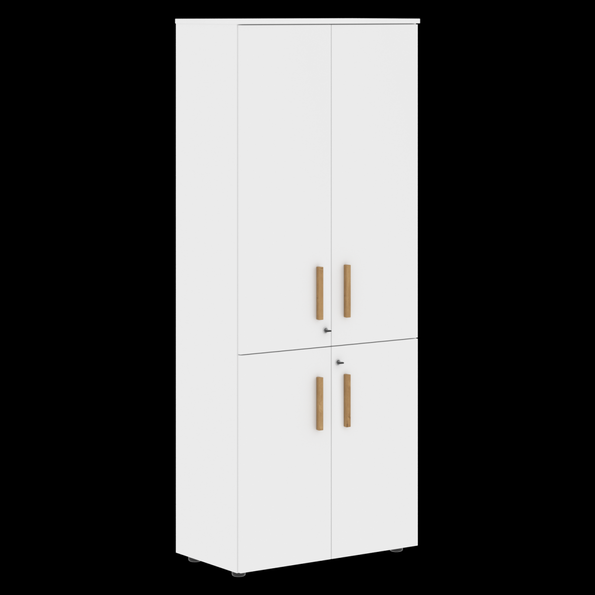 Шкаф и двери выполнены из ЛДСП. Есть замок. Опоры шкафа регулируются. Ручки вертикальные накладные из натурального дерева массив бука, в цвете дуб гамильтон. Натуральное дерево обработано маслом-воском, что подчеркивает текстуру древесины и создаёт очень прочную, твердую, износоустойчивую, антистатическую, водо- и грязеотталкивающую поверхность.