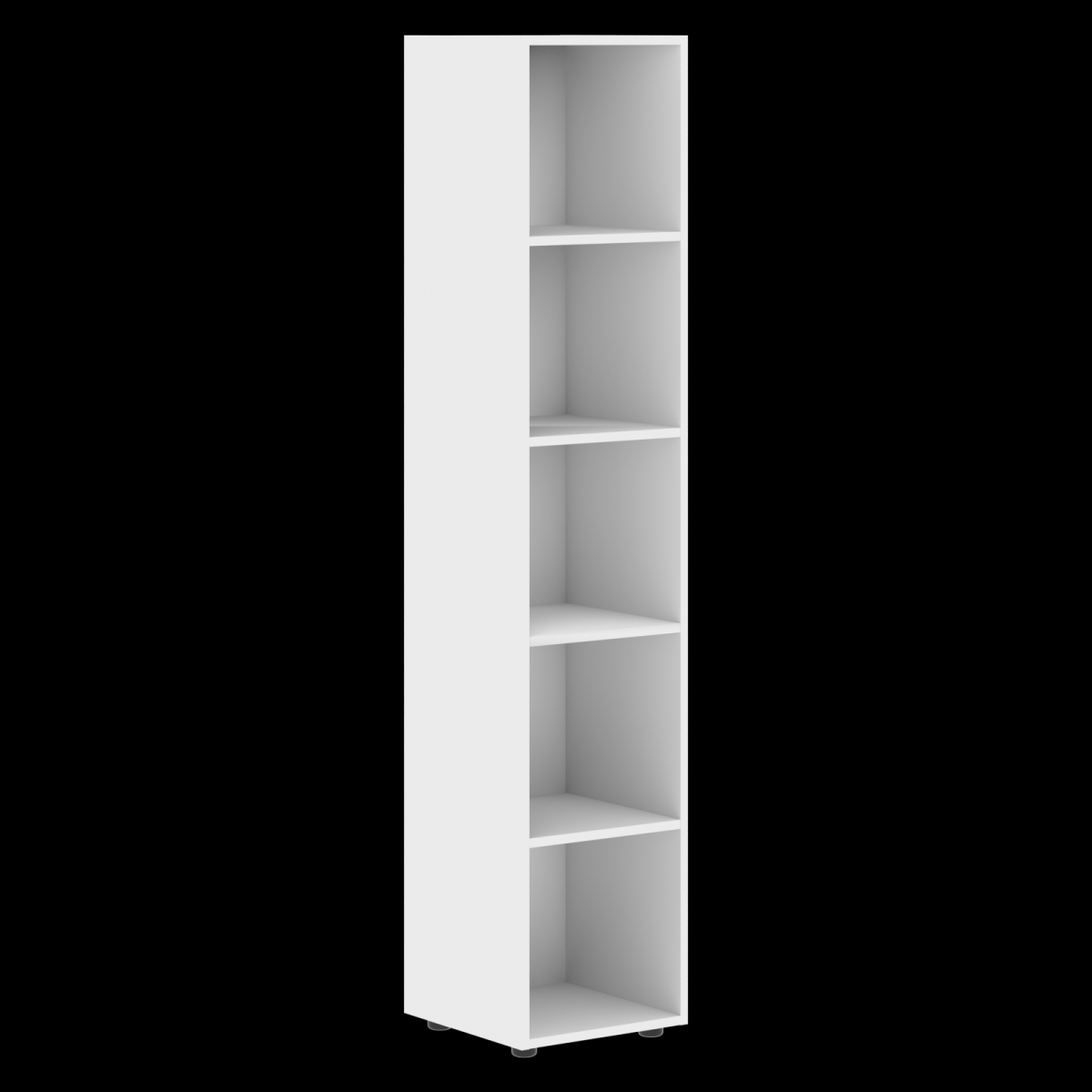 Стеллаж выполнен из ЛДСП т.18мм с кромками ABS Т.0,45мм, с задней стенкой из ДВП т.3мм в цвет каркаса, комплектуется регулируемыми опорами 50х27 мм черного цвета. Стеллаж высокий комплектуется уголками для крепления к стене.