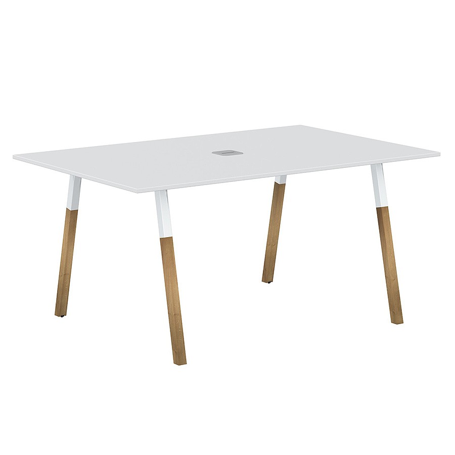 Столешница прямоугольная из ЛДСП т.18мм. c кромкой ABS т.2.мм, комплектуется квадратной заглушкой кабель-канала в центре, 2-мя траверсами и комбинированными опорами А-образной формы, верхняя часть из трубы 40х40мм и нижняя часть из массива бука; отделка – масло-воск. Опоры с регулировкой внизу.