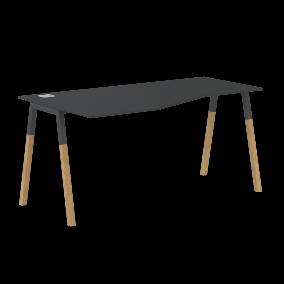 Столешница эргономичная из ЛДСП т.18мм. c кромкой ABS т.2.мм, комплектуется квадратной заглушкой кабель-канала по центру, 2-мя траверсами и комбинированными опорами А-образной формы, верхняя часть из профиля трубы 40х40мм и нижняя часть из массива бука; отделка – масло-воск. Опоры имеют регулировку внизу.