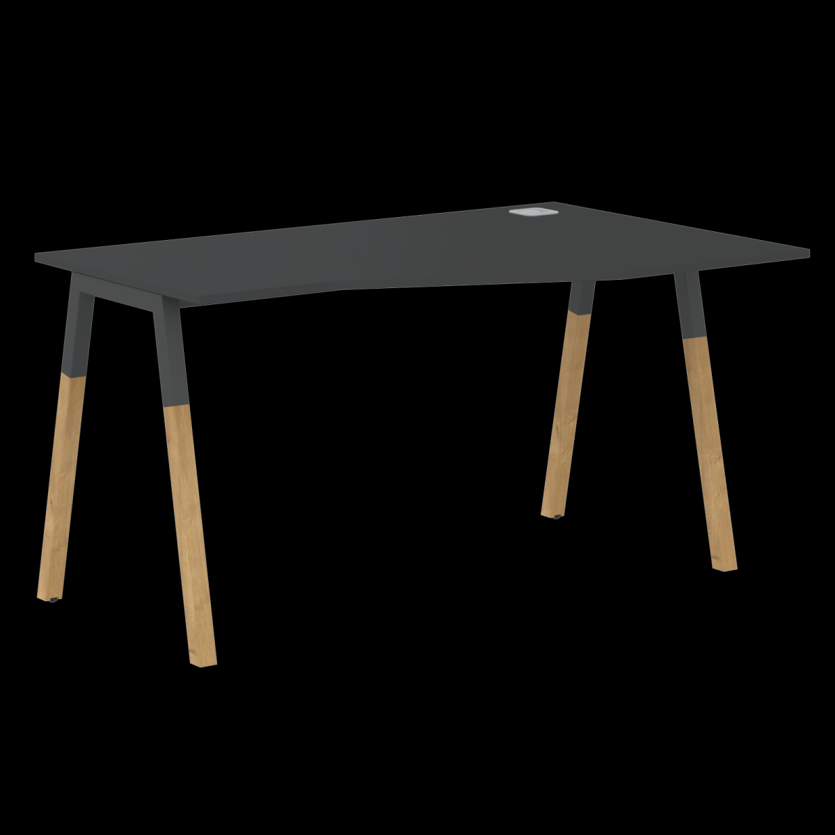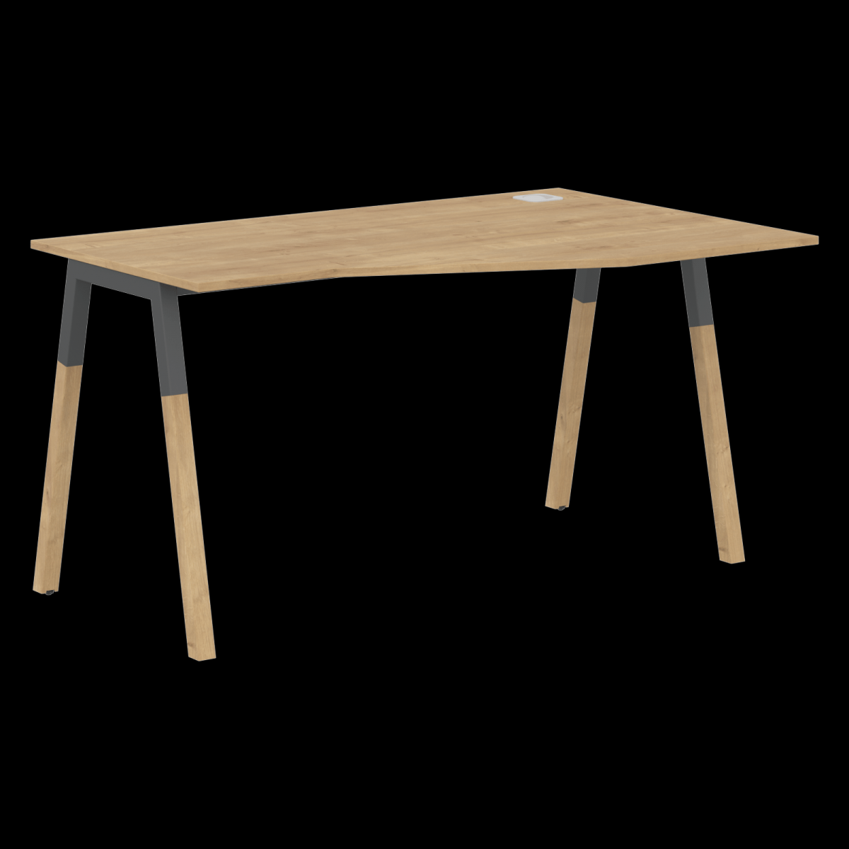 Столешница эргономичная из ЛДСП т.18мм. c кромкой ABS т.2.мм, комплектуется квадратной заглушкой кабель-канала по центру, 2-мя траверсами и комбинированными опорами А-образной формы, верхняя часть из профиля трубы 40х40мм и нижняя часть из массива бука; отделка – масло-воск. Опоры имеют регулировку внизу.