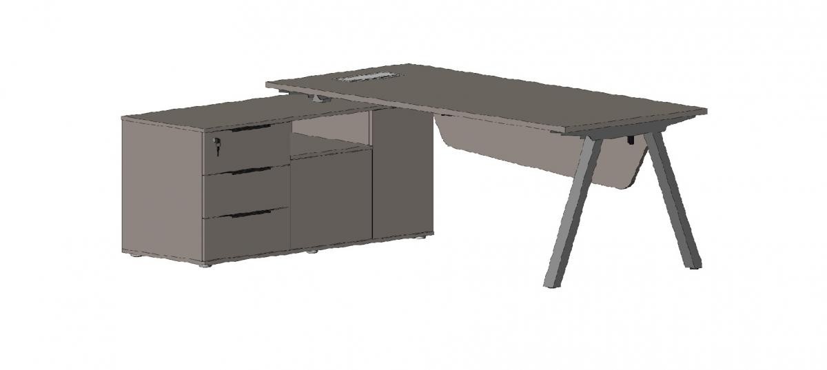 Стол руководителя с опорной тумбой левый 1960х1464х750 серый камень MEGAPOLIS