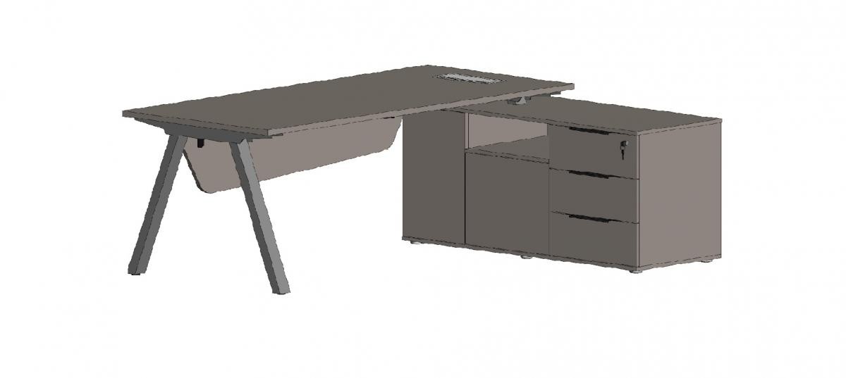 Стол руководителя с опорной тумбой правый 1960х1464х750 серый камень MEGAPOLIS