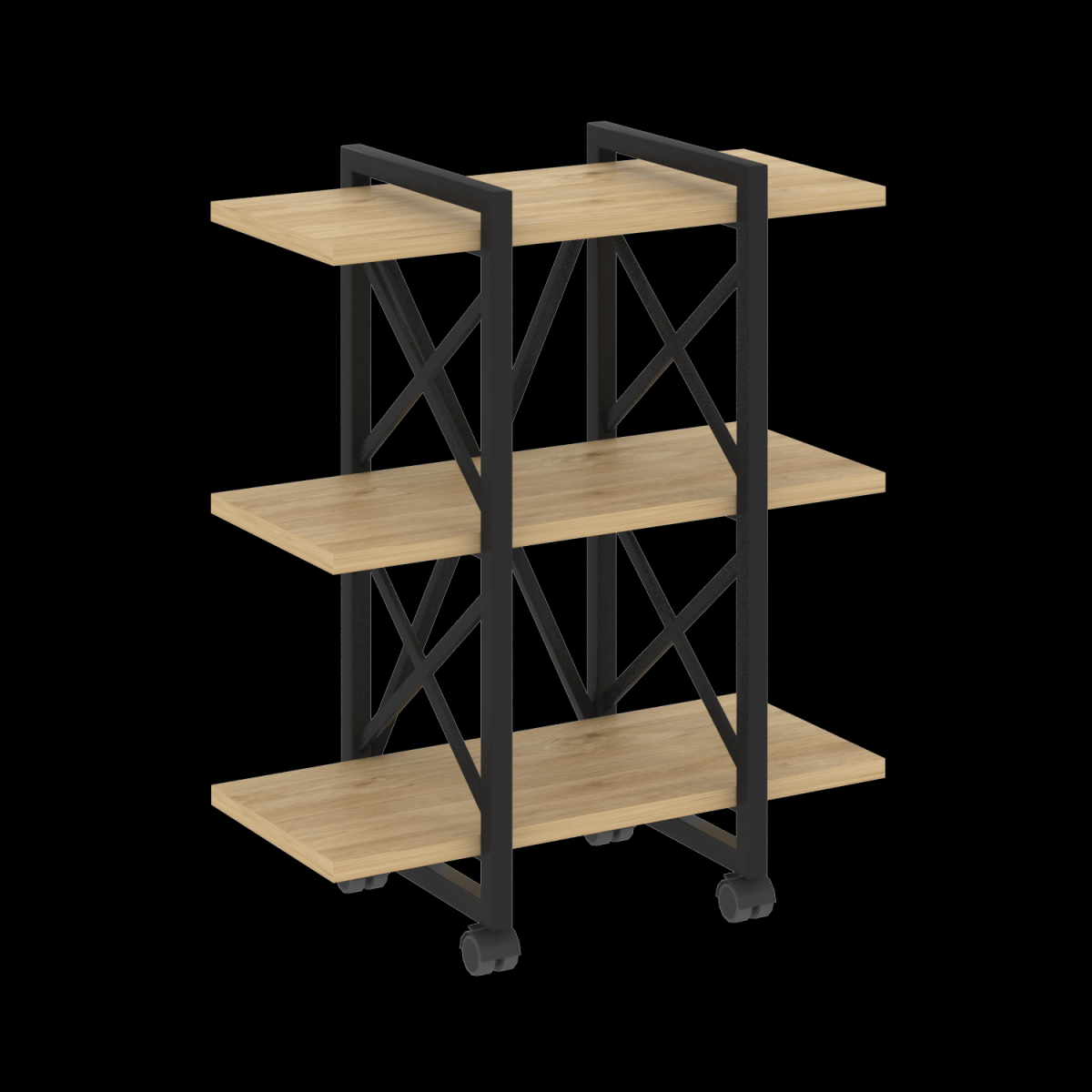 Стеллаж на колесных опорах - 3 полки VR.L-MST.K-3.4V цвет Денвер светлый/Черный размер 800x400x968мм