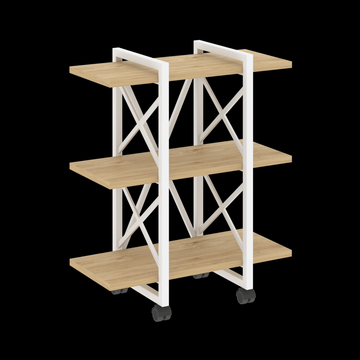 Стеллаж на колесных опорах - 3 полки VR.L-MST.K-3.4V цвет Тиквуд светлый/Белый