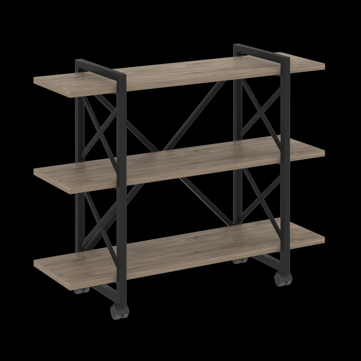 Стеллаж на колесных опорах - 3 полки VR.L-MST.K-3.8V цвет Денвер светлый/Черный размер 1200х400х968мм