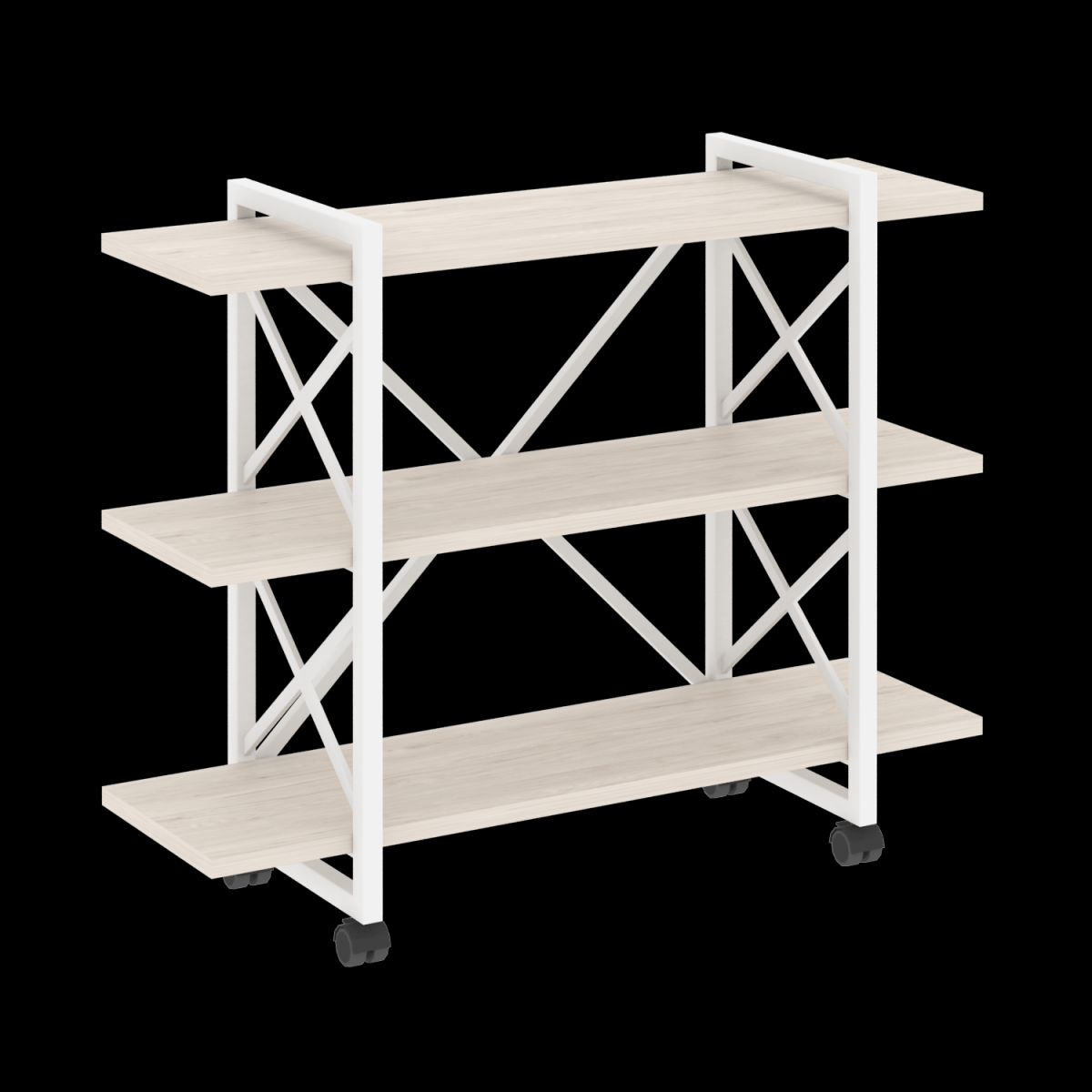 Стеллаж на колесных опорах - 3 полки VR.L-MST.K-3.8V цвет Дуб аттик/Белый размер 1200х400х968мм