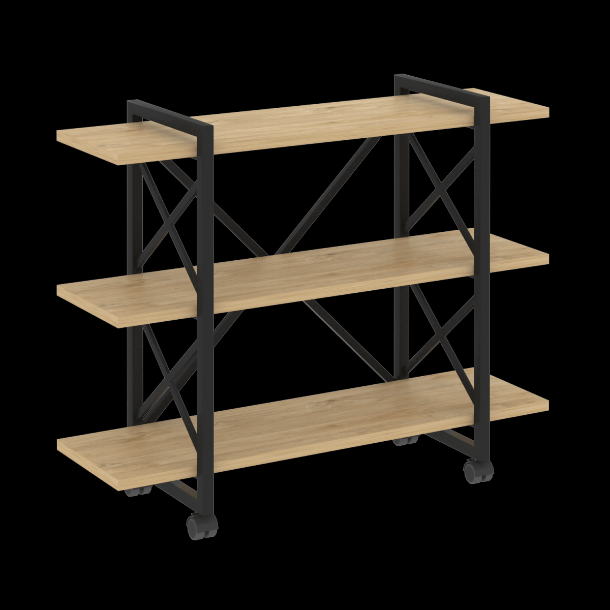 Стеллаж на колесных опорах - 3 полки VR.L-MST.K-3.8V цвет Тиквуд светлый/Черный размер 1200х400х968мм