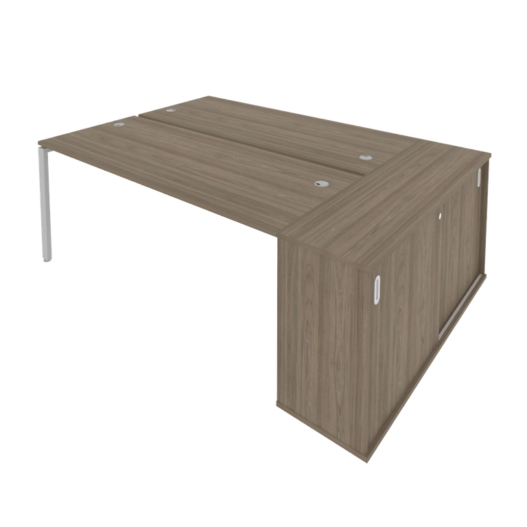 Бенч-система на 2 рабочих места с опорным шкафом-купе Metal system Б.РС-СШК-1.5 Вяз 2210х1475х750 Вяз Благородный темный