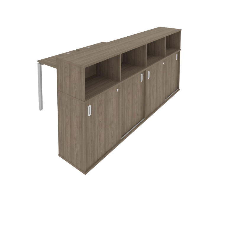 Бенч-система на 2 рабочих места с опорным шкафом-купе Metal system Б.РС-СШК-4.1 Вяз 1410х2332х1098 Вяз Благородный темный