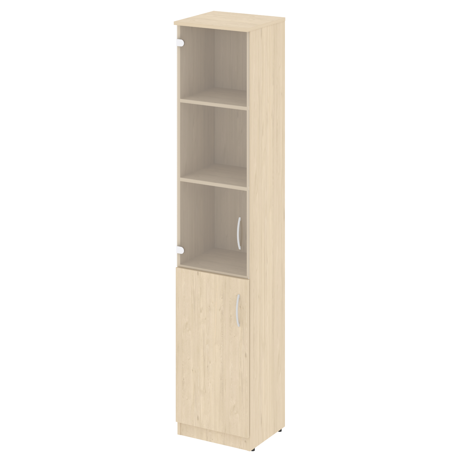 Шкаф высокий узкий для документов (1 низкая дверь ЛДСП, 1 средняя дверь стекло) NOVA S В.СУ-1.2Л Бук Артизан 388х360х1915 Бук артизан