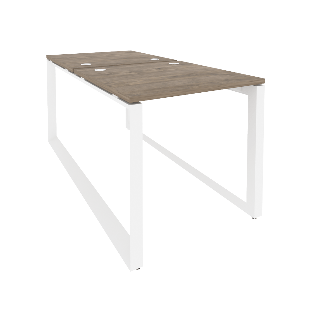 Бенч-система 2 рабочих места на О-образном металлокаркасе Onix O.MO-D.RS-2.0.8 Тиквуд темный/Белый металл 780x1635x750
