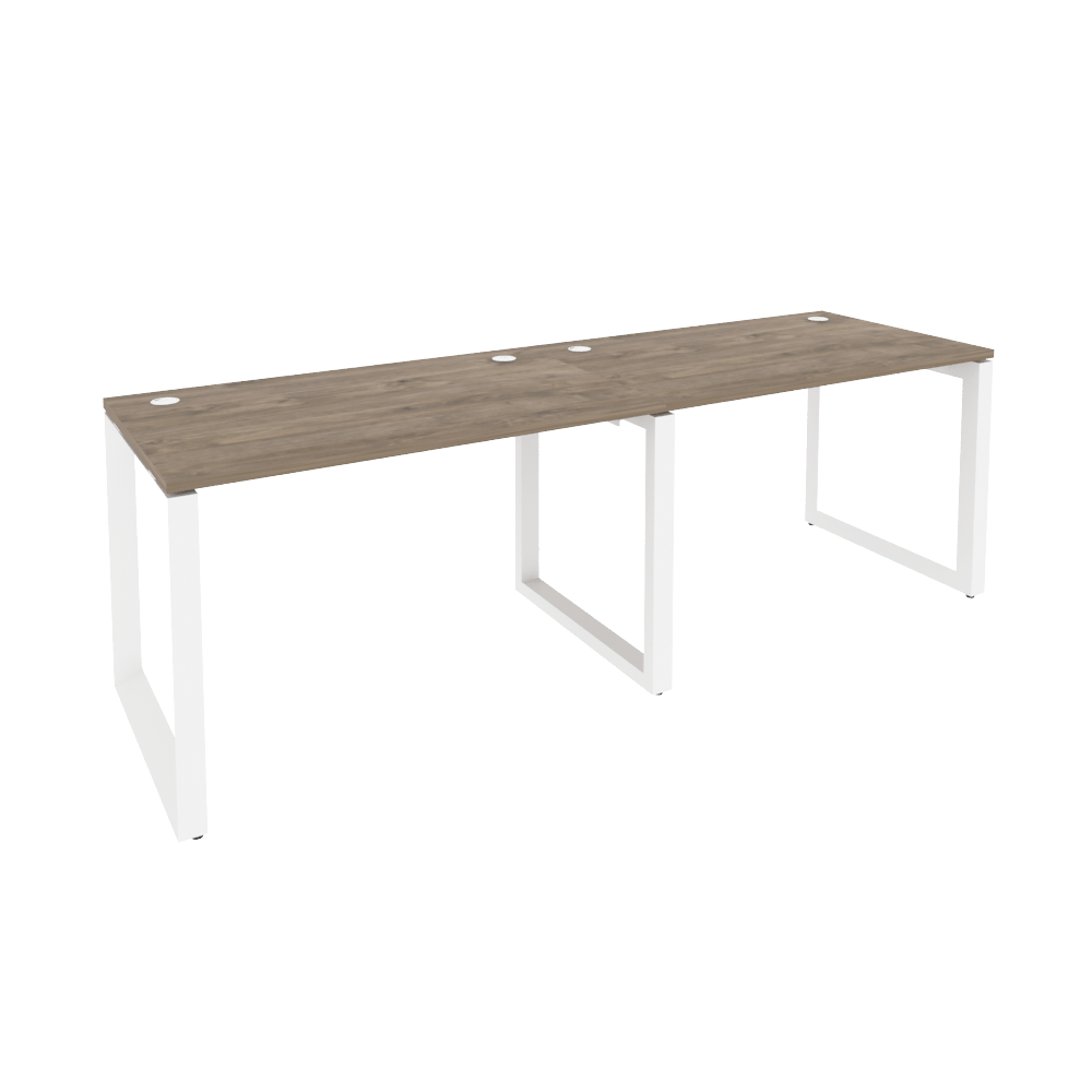 Бенч-система 2 рабочих места на О-образном металлокаркасе Onix O.MO-RS-2.2.7 Тиквуд темный/Белый металл 2360x720x750