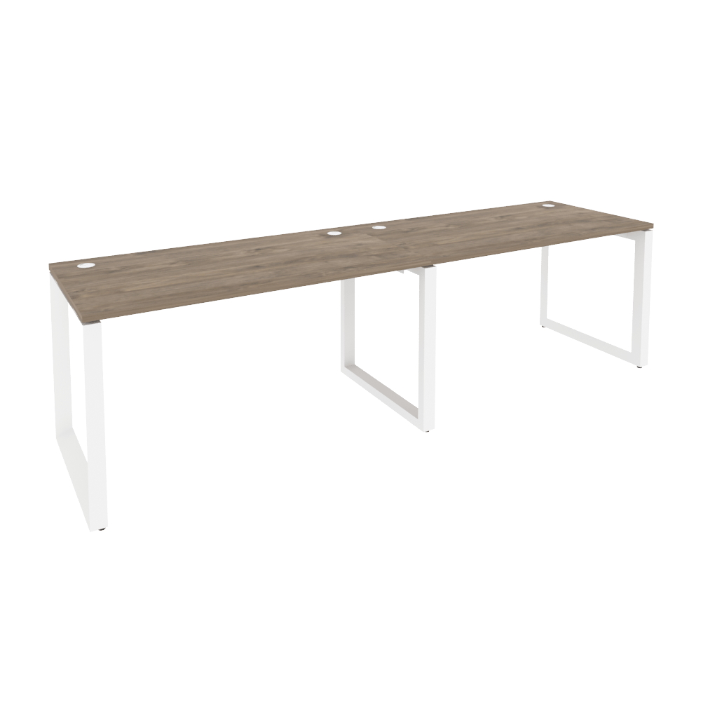 Бенч-система 2 рабочих места на О-образном металлокаркасе Onix O.MO-RS-2.3.7 Тиквуд темный/Белый металл 2760x720x750