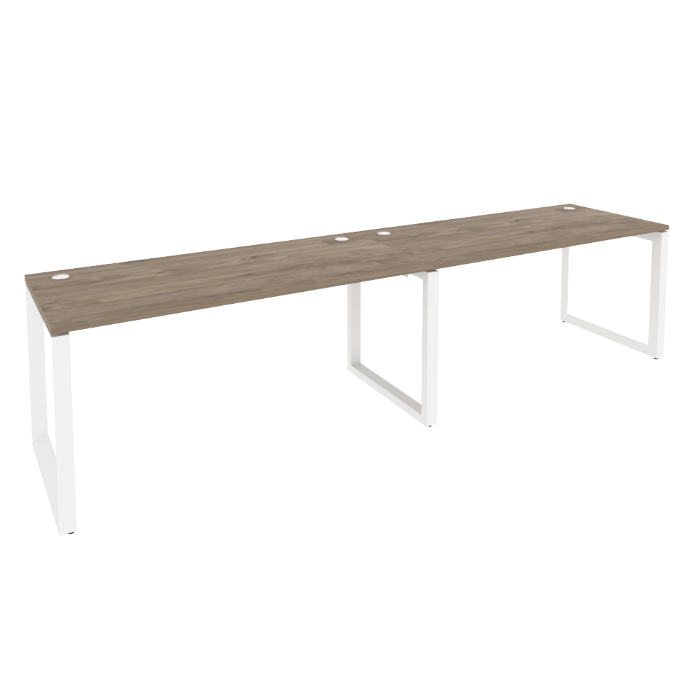 Бенч-система 2 рабочих места на О-образном металлокаркасе Onix O.MO-RS-2.4.7 Тиквуд темный/Белый металл 3160x720x750