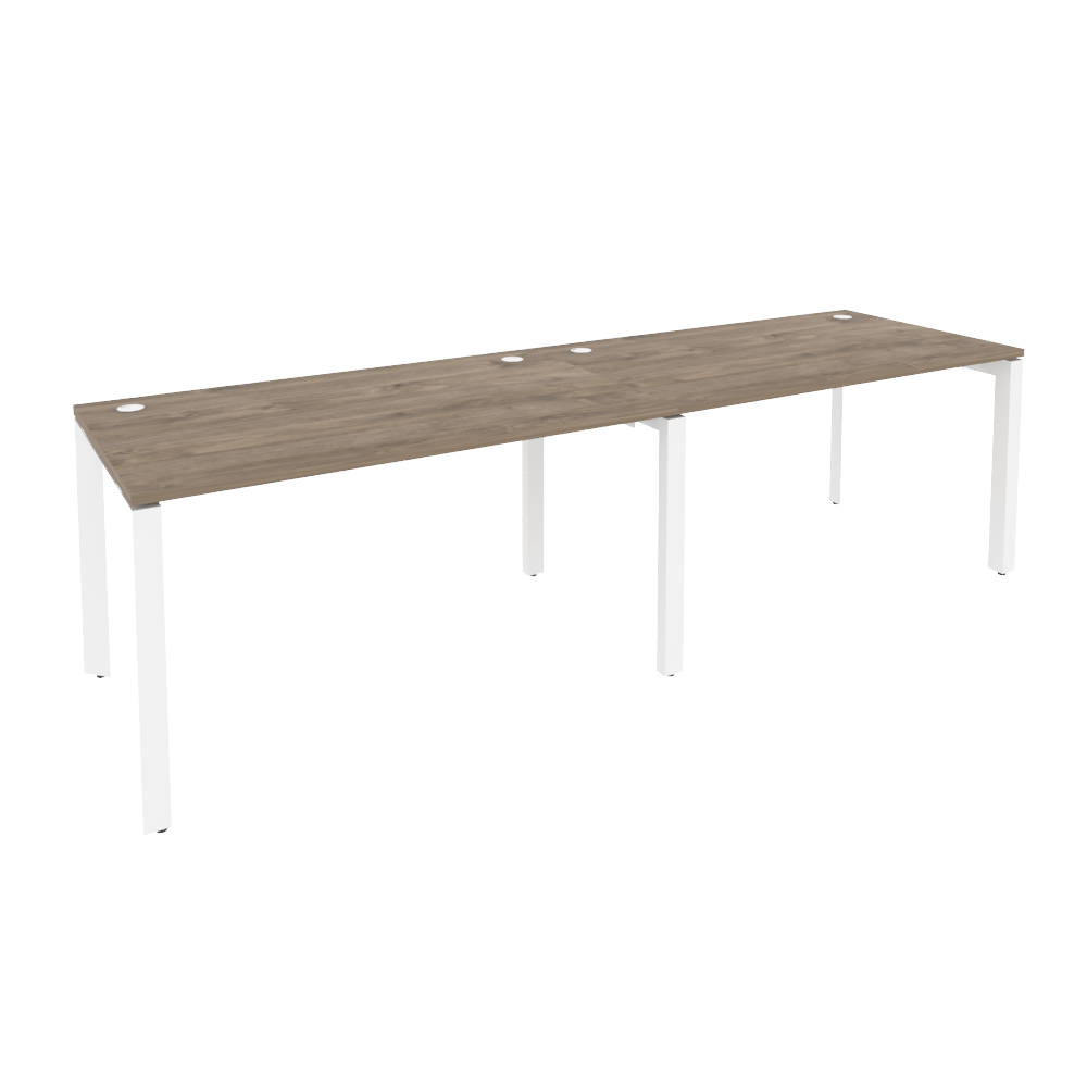 Бенч-система 2 рабочих места на П-образном металлокаркасе Onix O.MP-RS-2.3.8 Тиквуд темный/Белый металл 2760x800x750