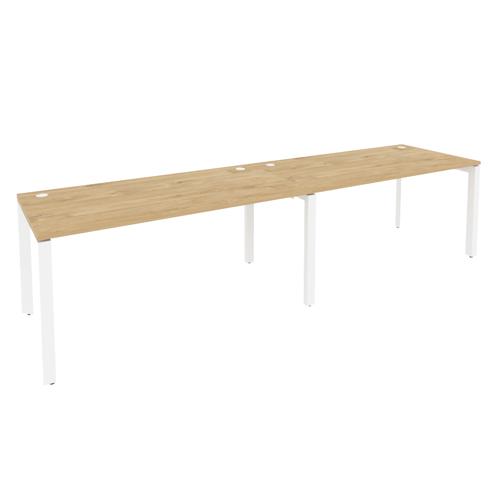 Бенч-система 2 рабочих места на П-образном металлокаркасе Onix O.MP-RS-2.4.8 Тиквуд светлый/Белый металл 3160x800x750