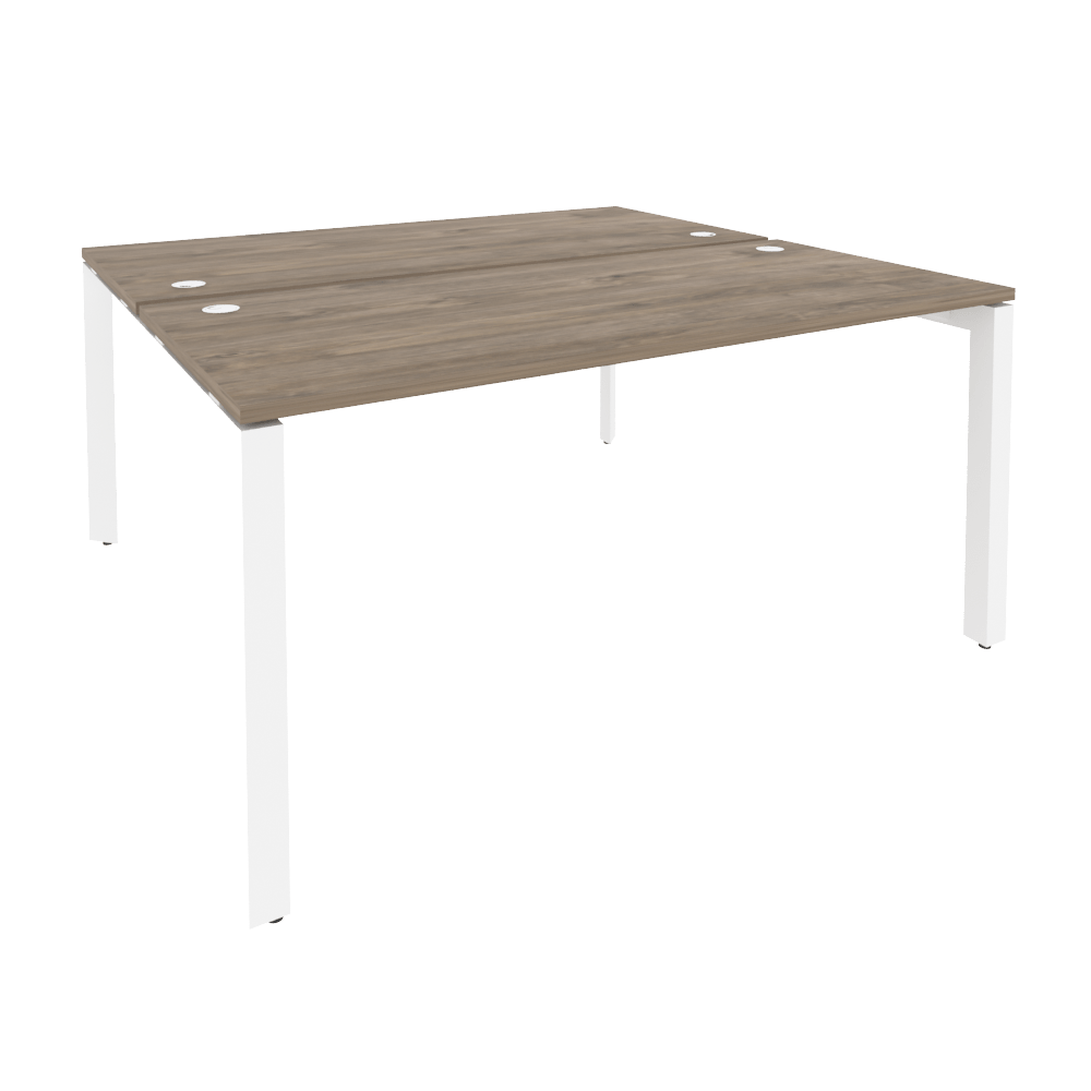 Бенч-система 2 рабочих на П-образном металлокаркасе Onix O.MP-D.RS-2.4.7 Тиквуд темный/Белый металл1580x1475x750