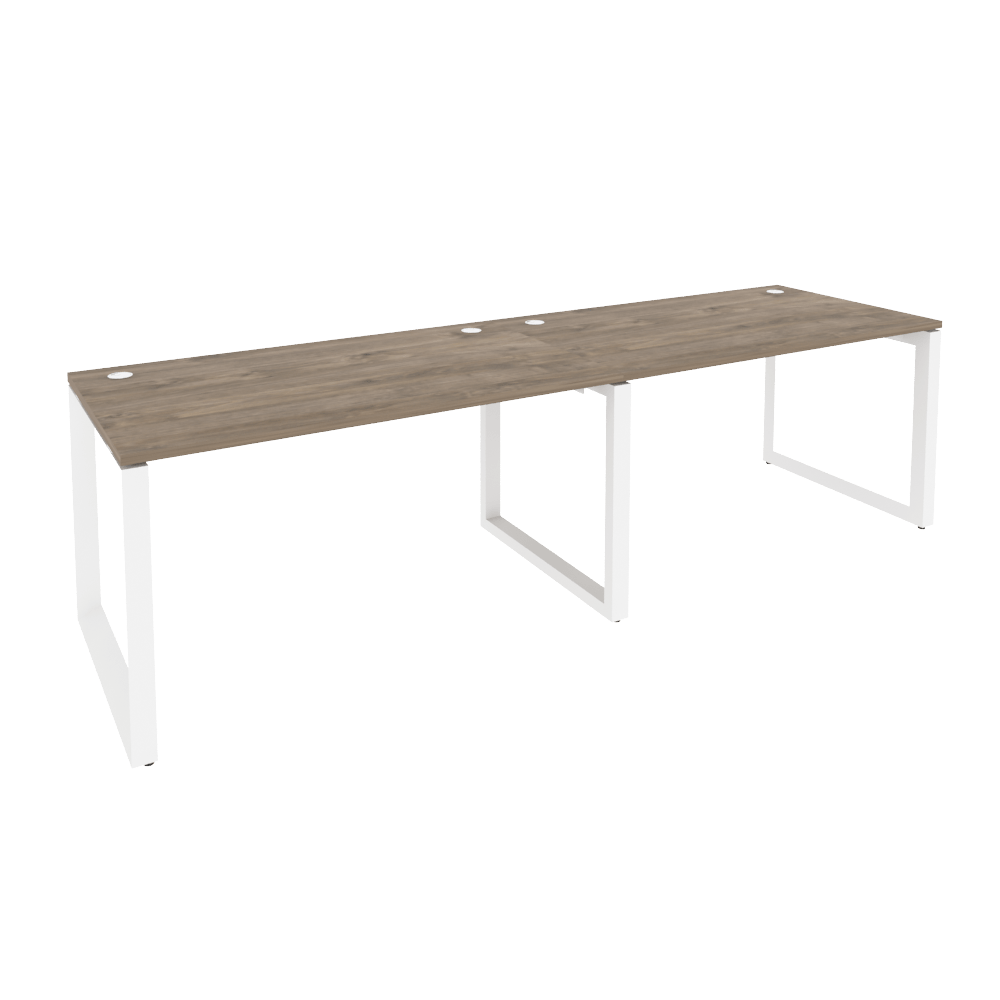 Бенч-система 3 рабочих места на О-образном металлокаркасе Onix O.MO-RS-2.3.8 Тиквуд темный/Белый металл 2760x800x750