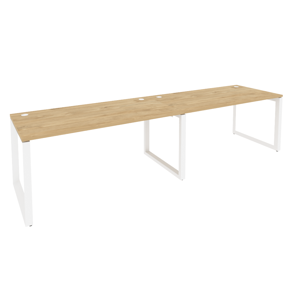 Бенч-система 3 рабочих места на О-образном металлокаркасе Onix O.MO-RS-2.4.8 Тиквуд светлый/Белый металл 3160x800x750