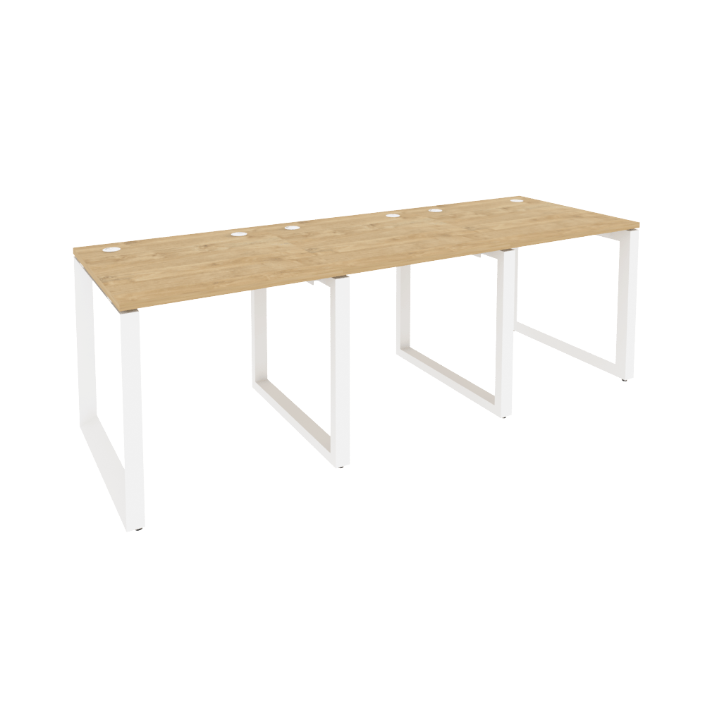 Бенч-система 3 рабочих места на О-образном металлокаркасе Onix O.MO-RS-3.0.8 Тиквуд светлый/Белый металл2340x800x750