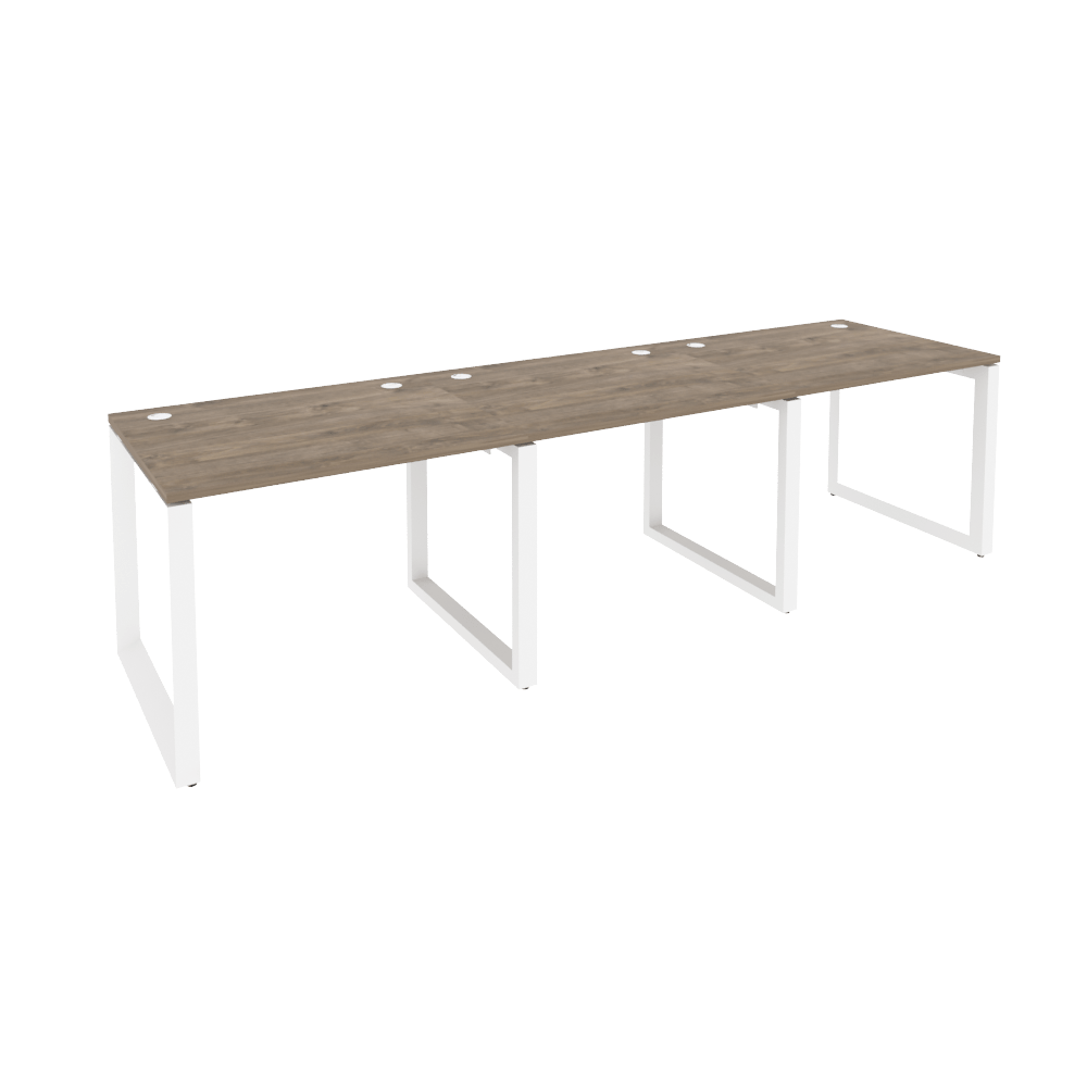 Бенч-система 3 рабочих места на О-образном металлокаркасе Onix O.MO-RS-3.1.8 Тиквуд темный/Белый металл 2940x800x750