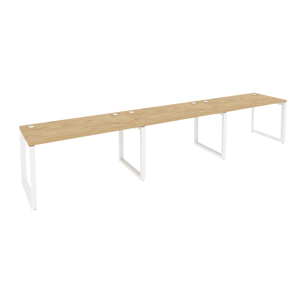 Бенч-система 3 рабочих места на О-образном металлокаркасе Onix O.MO-RS-3.3.7 Тиквуд светлый/Белый металл 4140x720x750