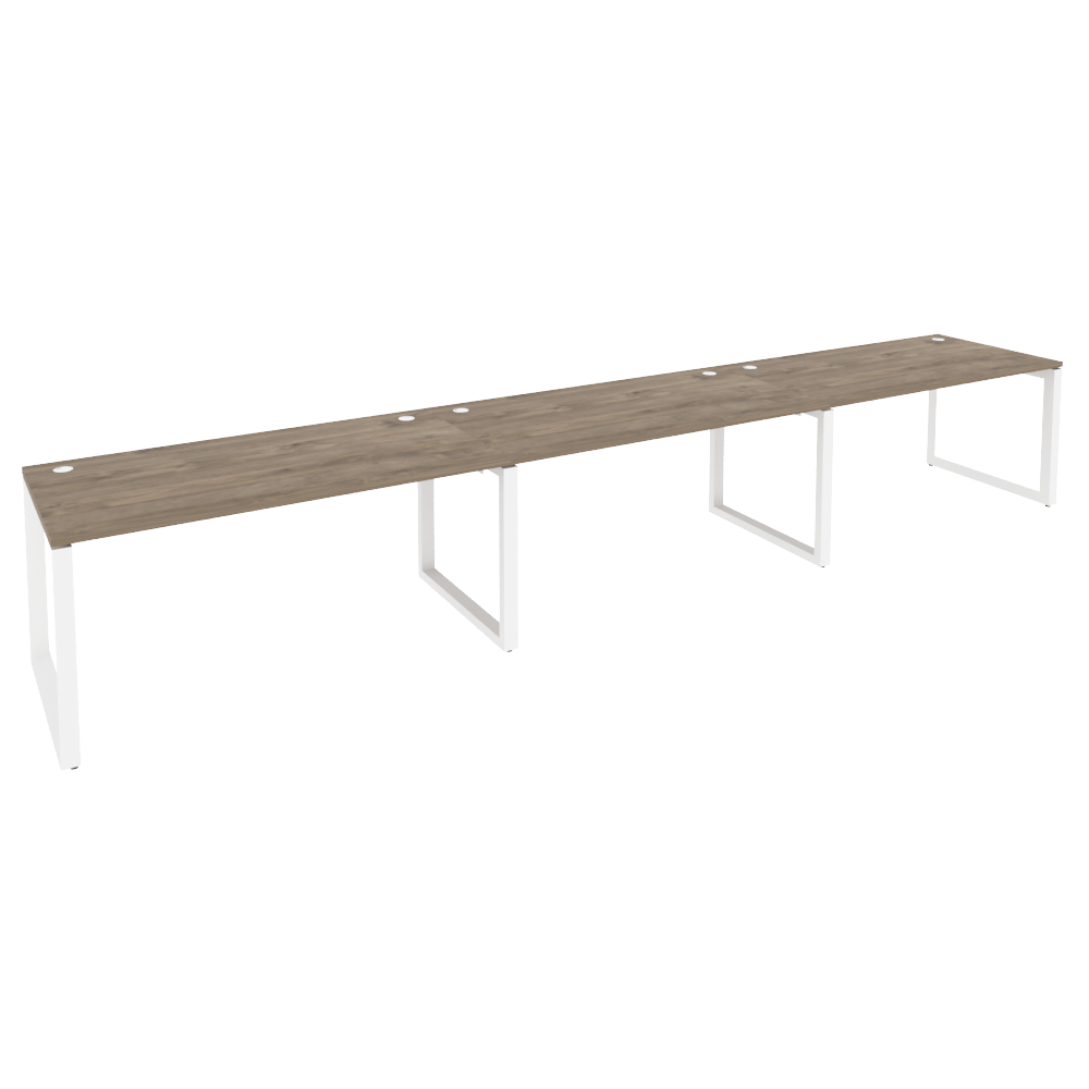 Бенч-система 3 рабочих места на О-образном металлокаркасе Onix O.MO-RS-3.4.8 Тиквуд темный/Белый металл 4740x800x750