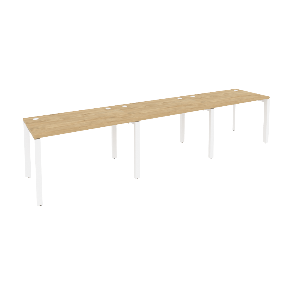 Бенч-система 3 рабочих на П-образном металлокаркасе Onix O.MP-RS-3.2.7 Тиквуд светлый/Белый металл 3540x720x750