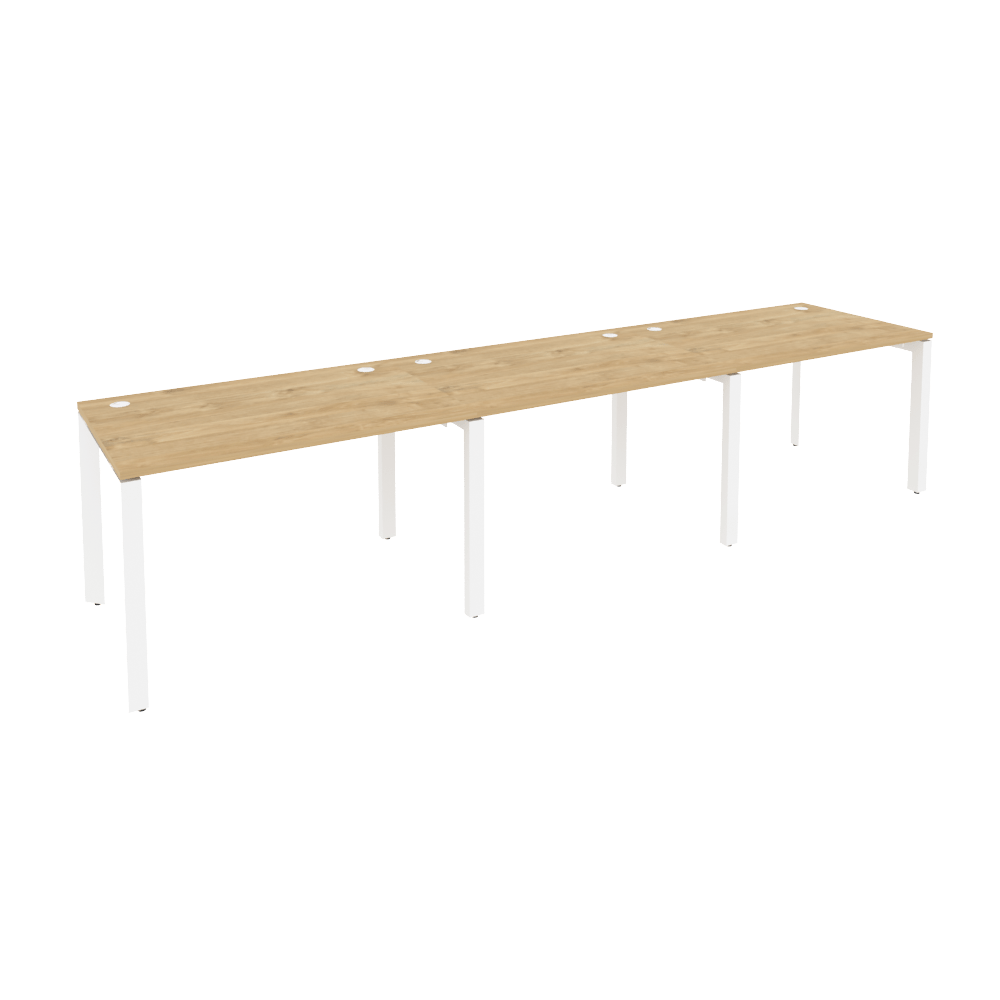 Бенч-система 3 рабочих на П-образном металлокаркасе Onix O.MP-RS-3.2.8 Тиквуд светлый/Белый металл 3540x800x750
