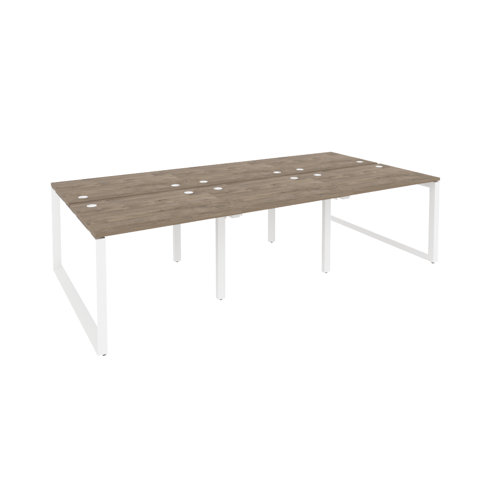 Бенч-система 6 рабочих мест на О-образном металлокаркасе Onix O.MO-D.RS-6.1.7 Тиквуд темный/Белый металл 2940x1475x750