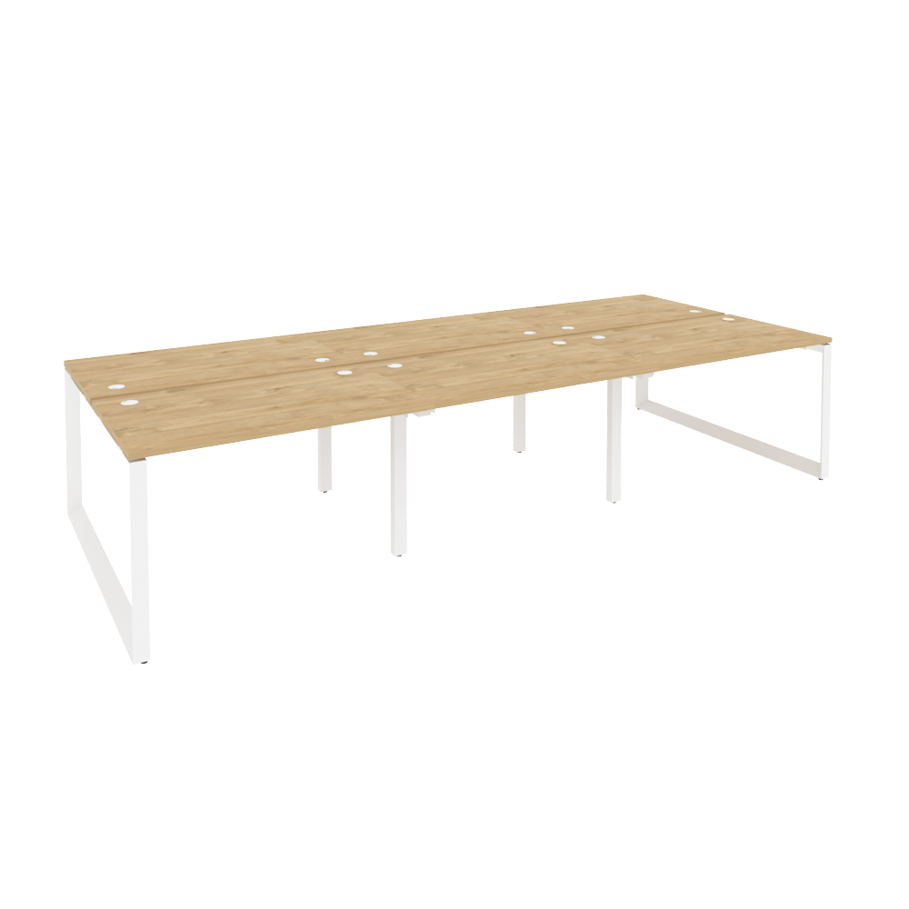 Бенч-система 6 рабочих мест на О-образном металлокаркасе Onix O.MO-D.RS-6.2.7 Тиквуд светлый/Белый металл 3540x1475x750