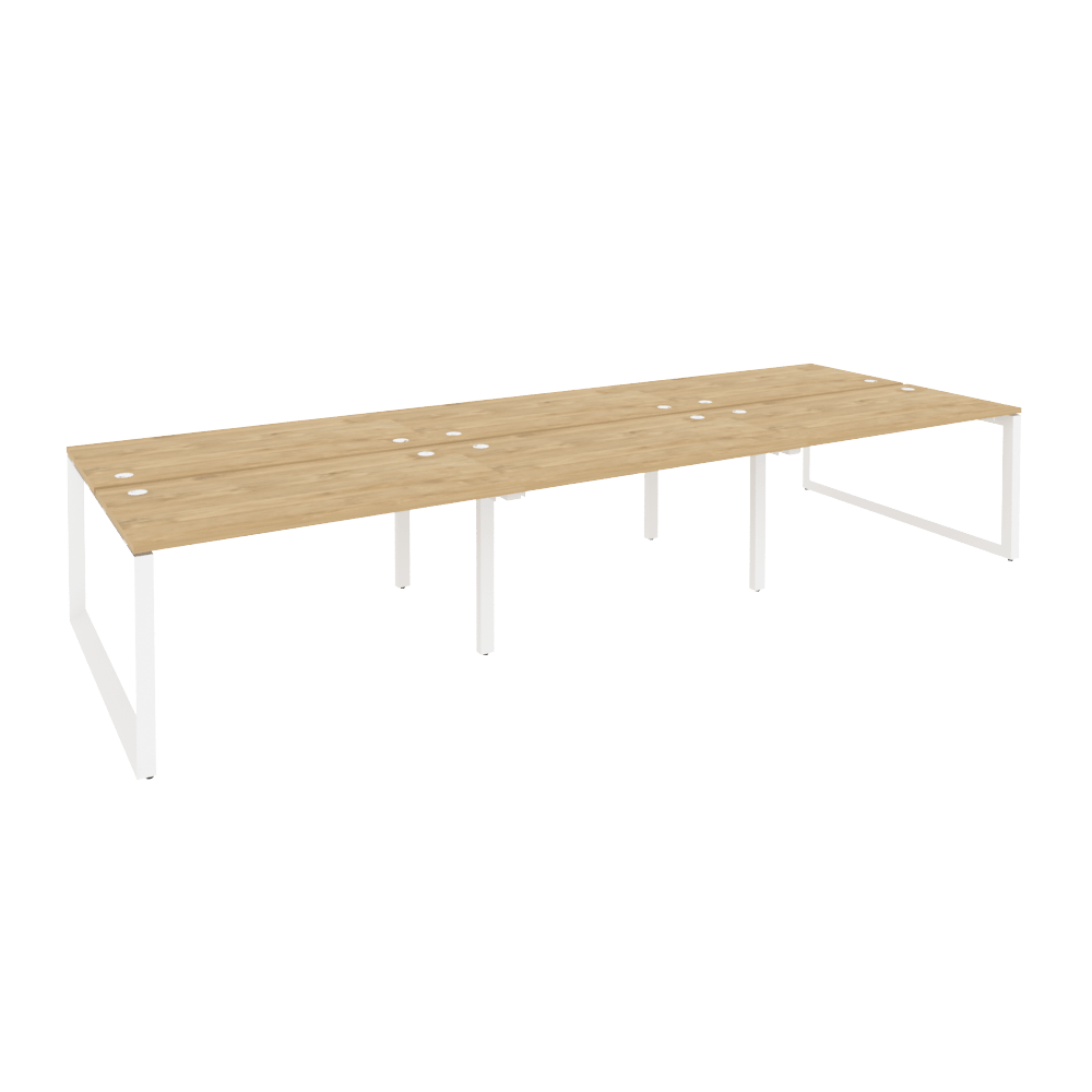 Бенч-система 6 рабочих мест на О-образном металлокаркасе Onix O.MO-D.RS-6.3.7 Тиквуд светлый/Белый металл 4140x1475x750