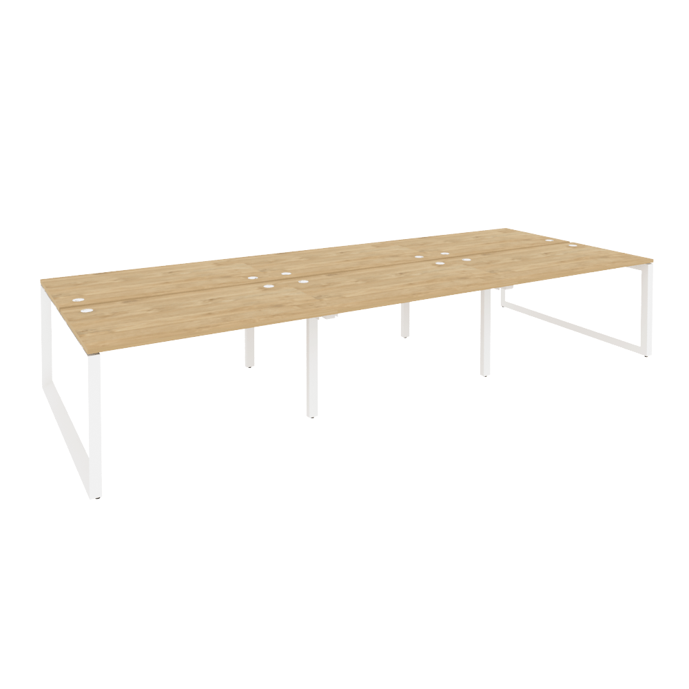 Бенч-система 6 рабочих мест на О-образном металлокаркасе Onix O.MO-D.RS-6.3.8 Тиквуд светлый/Белый металл 4140x1635x750
