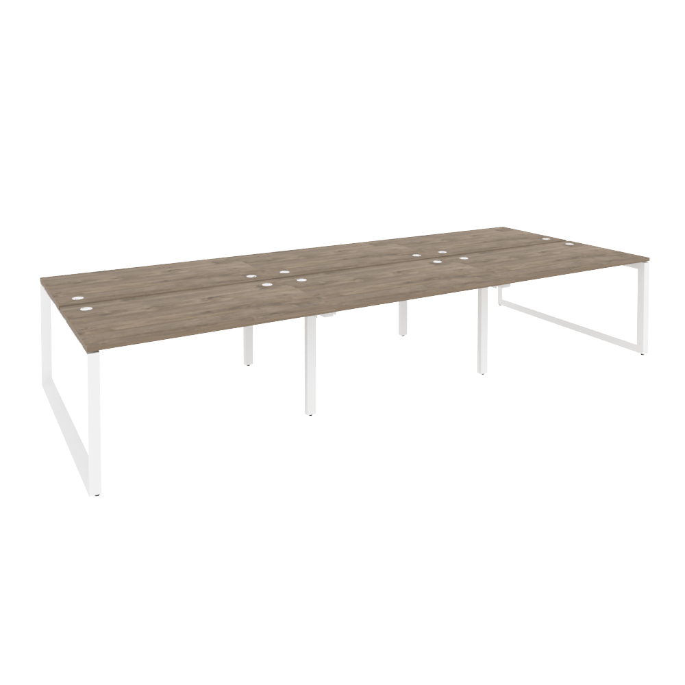 Бенч-система 6 рабочих мест на О-образном металлокаркасе Onix O.MO-D.RS-6.3.8 Тиквуд темный/Белый металл 4140x1635x750