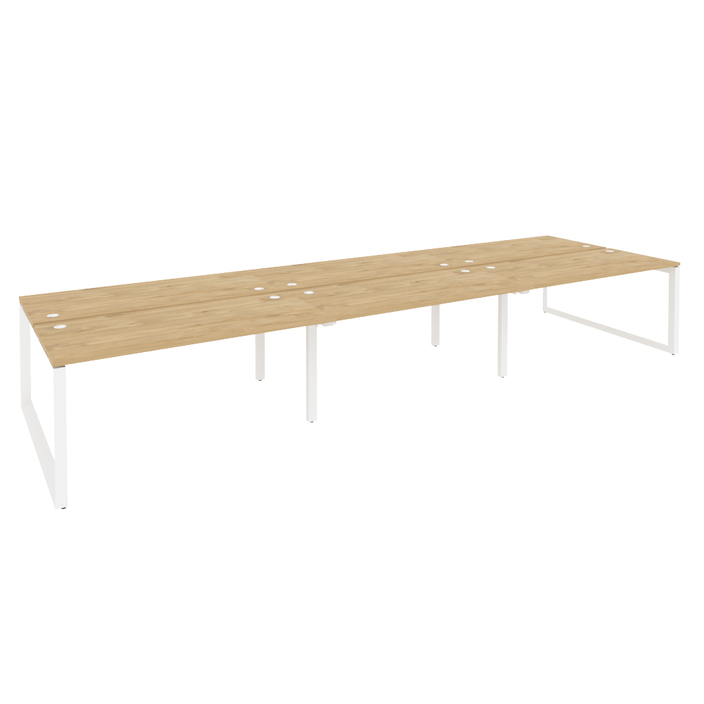 Бенч-система 6 рабочих мест на О-образном металлокаркасе Onix O.MO-D.RS-6.4.7 Тиквуд светлый/Белый металл 4740x1475x750