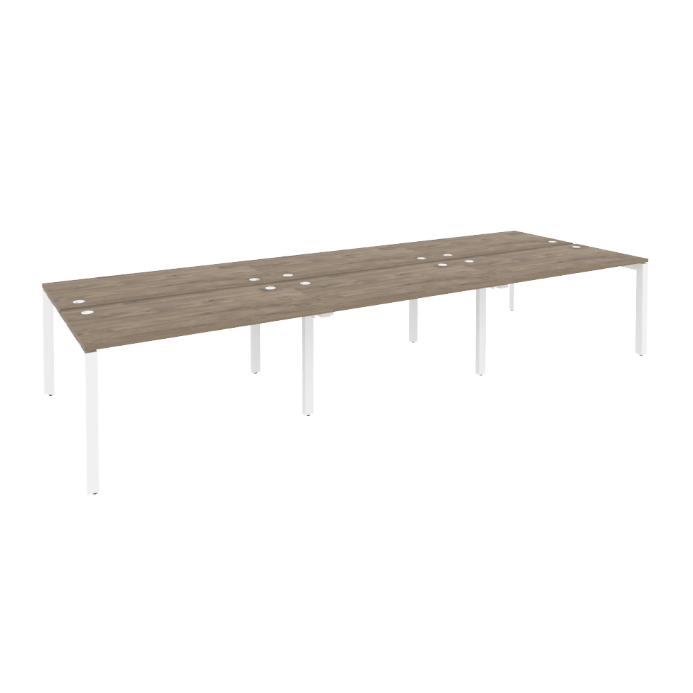 Бенч-система 6 рабочих мест на П-образном металлокаркасе Onix O.MP-D.RS-6.3.7 Тиквуд темный/Белый металл 4140x1475x750