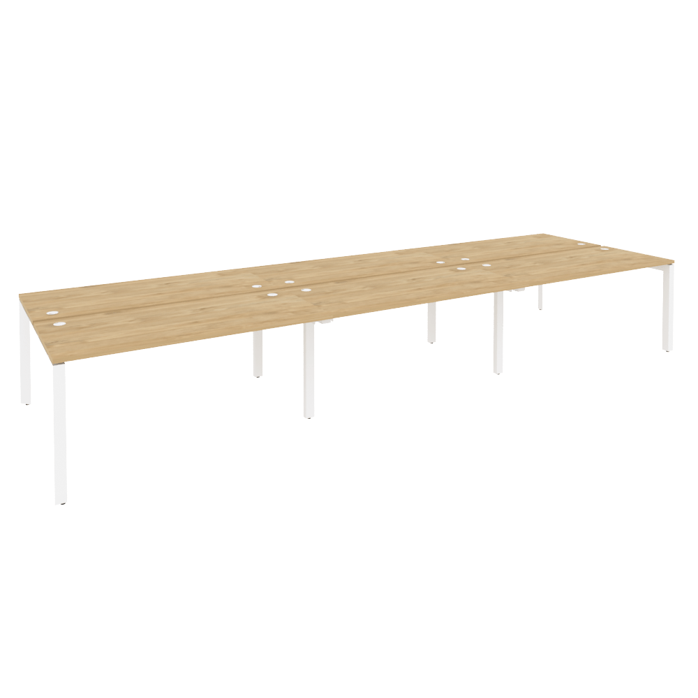 Бенч-система 6 рабочих мест на П-образном металлокаркасе Onix O.MP-D.RS-6.4.7 Тиквуд светлый/Белый металл 4740x1475x750