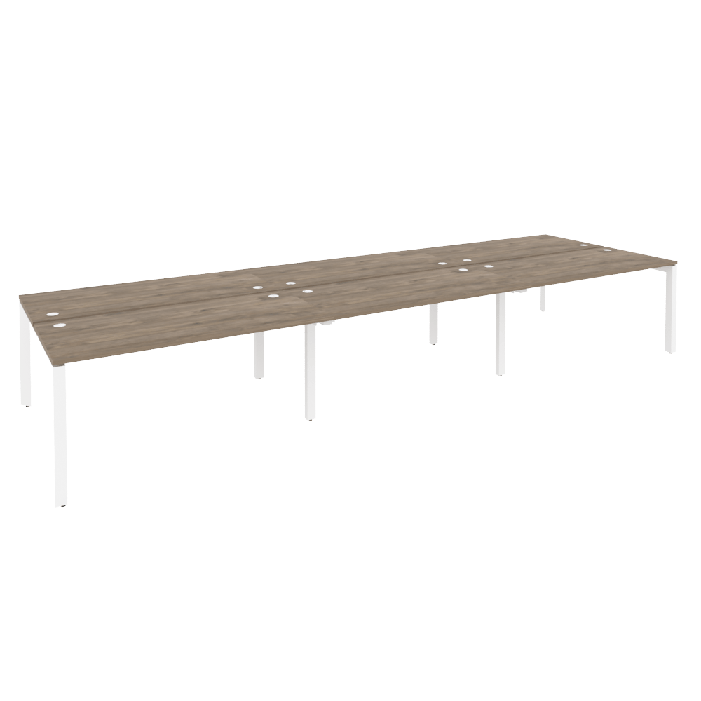 Бенч-система 6 рабочих мест на П-образном металлокаркасе Onix O.MP-D.RS-6.4.7 Тиквуд темный/Белый металл 4740x1475x750