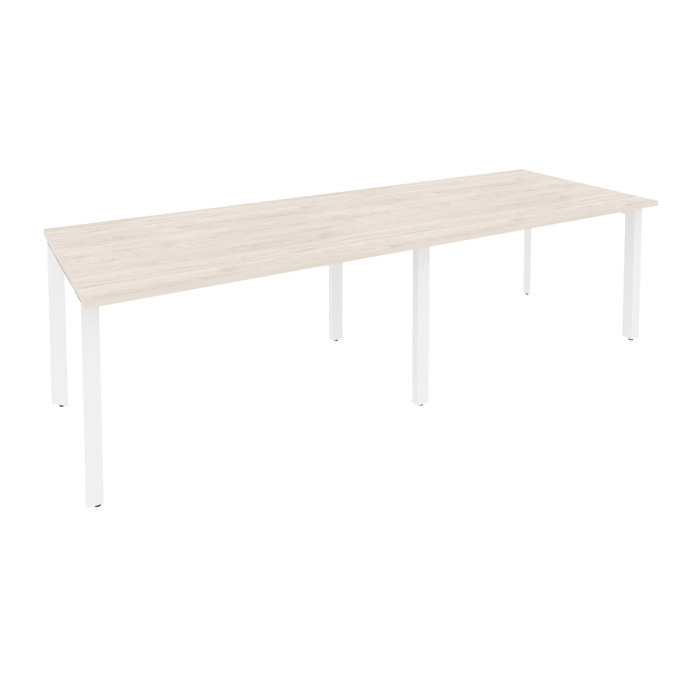 Конференц стол для переговоров (2 столешницы) П-образный каркас Onix O.MP-PRG-2.3 Денвер светлый/Белый металл 2760x980x750