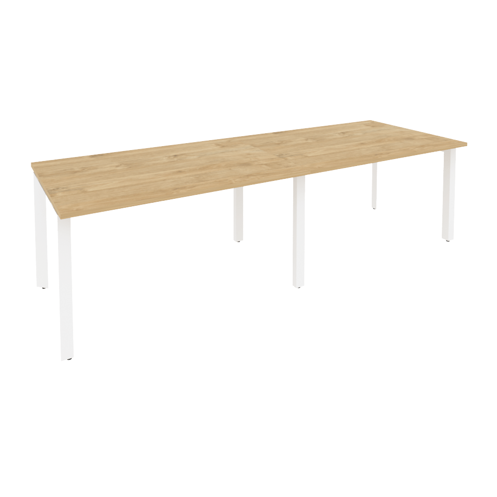Конференц стол для переговоров (2 столешницы) П-образный каркас Onix O.MP-PRG-2.3 Тиквуд светлый/Белый металл 2760x980x750